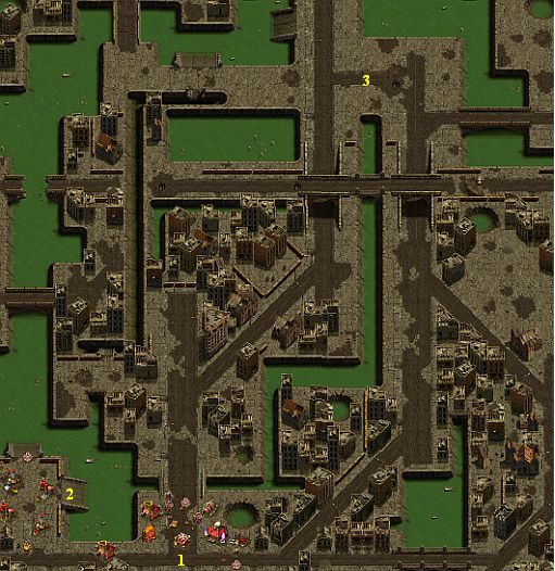 You have a camp at the point 1. Send your Mobile Clan Hall to the point 2 and build up it there. Now, you can build up Power Plant near your Derrick. Build up the defence of your camp and upgrade your buildings. Strike back air attacks from the North. Therefore, build up Bazooka Batteries. Make 12 Fighters and send them to the point 3. Destroy enemy antiaircraft forces there and then crush the enemy camp. In the end, clear up the rest of the map.