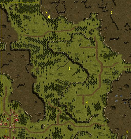 This mission is the same as the "Survivors go home" from Series 9. Therefore, the strategy is similar. The map of this mission is very large. Your camp is dislocated at the point 1. The Survivors have four camps (points 2, 3, 4 and 5), very strong power resources and a good defence from Laser Destroyers and AA Towers.